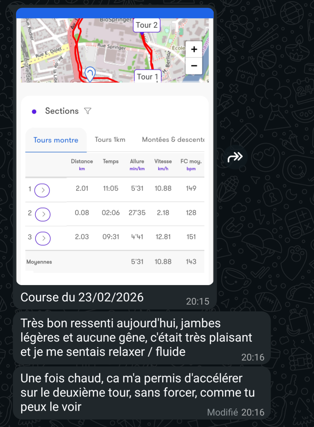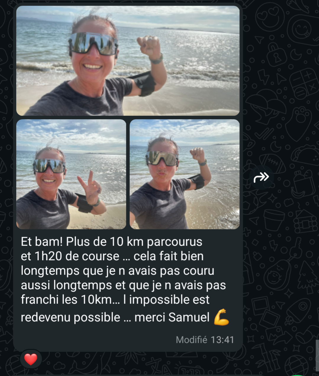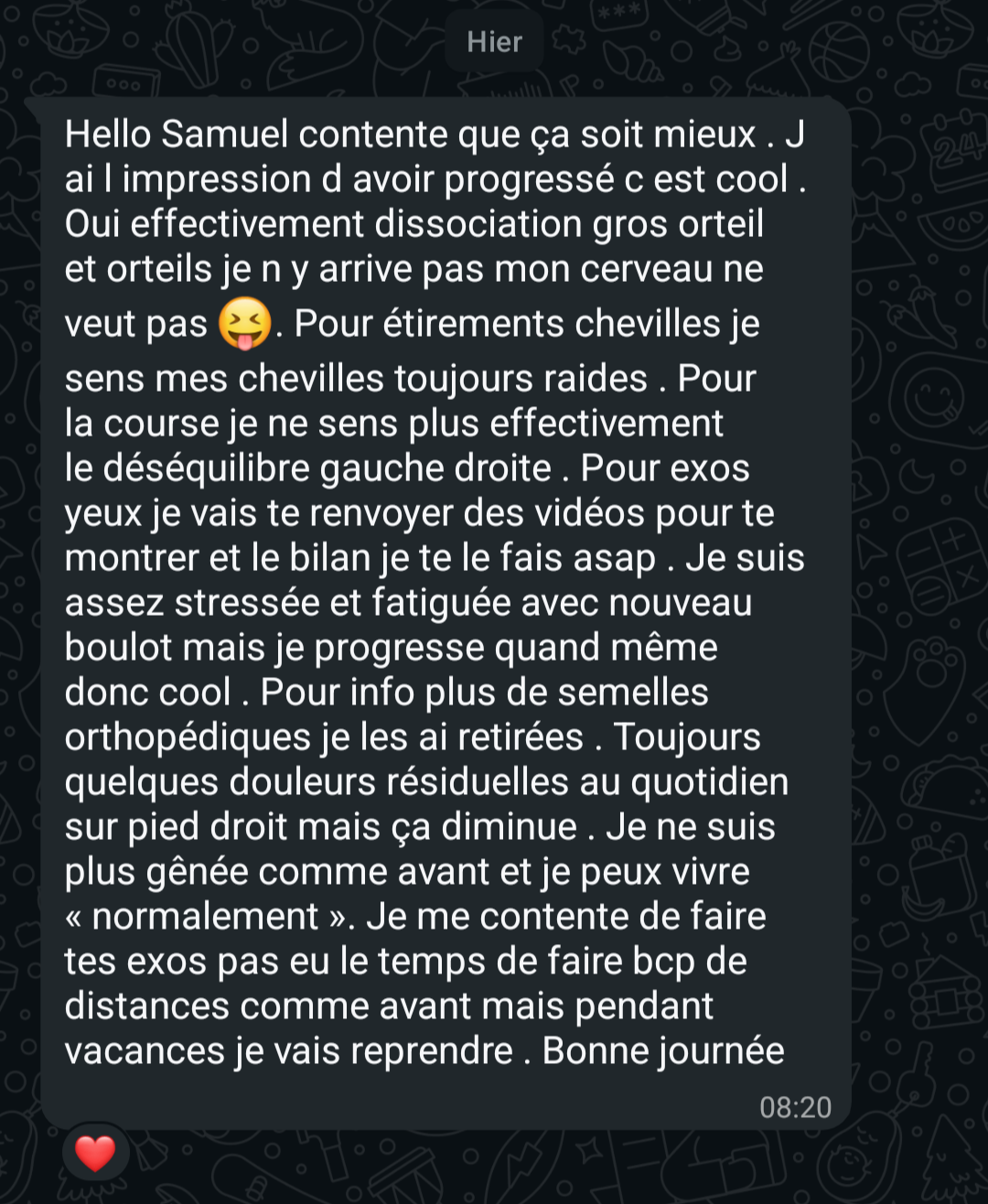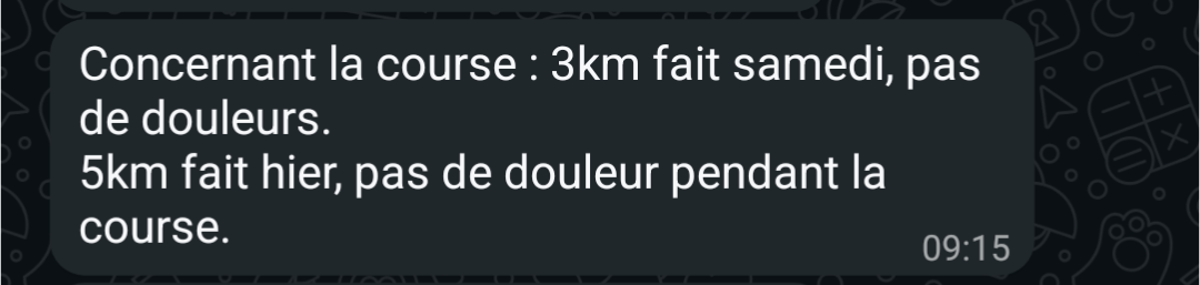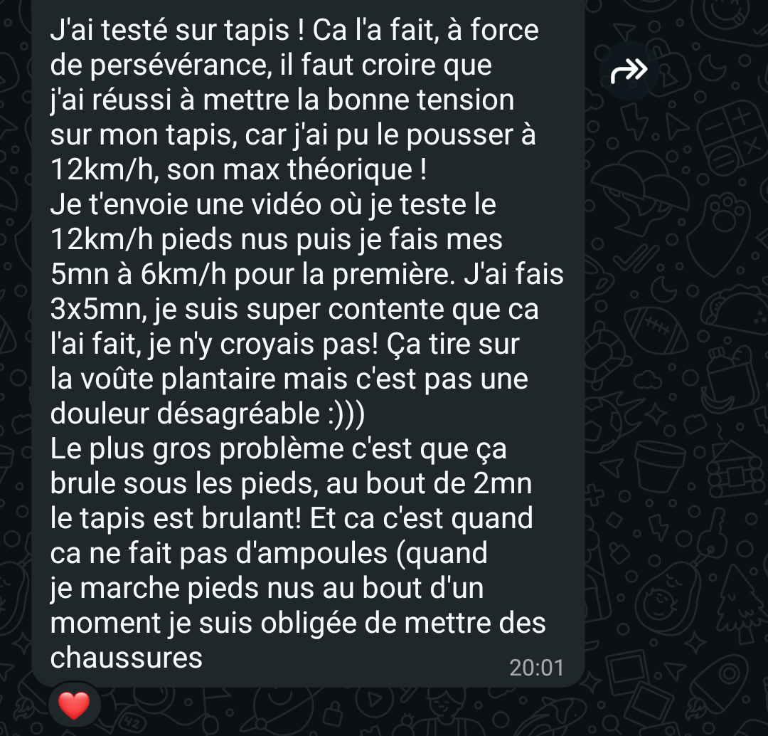 "Aujourd'hui je me sens bien mieux, en super forme et maintenant mes jambes sont en béton."