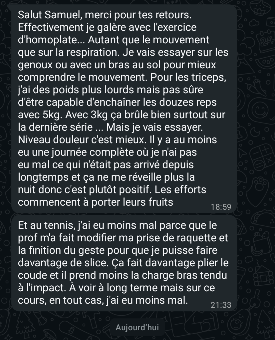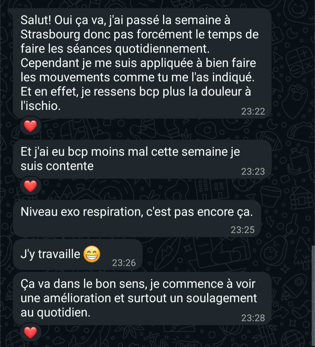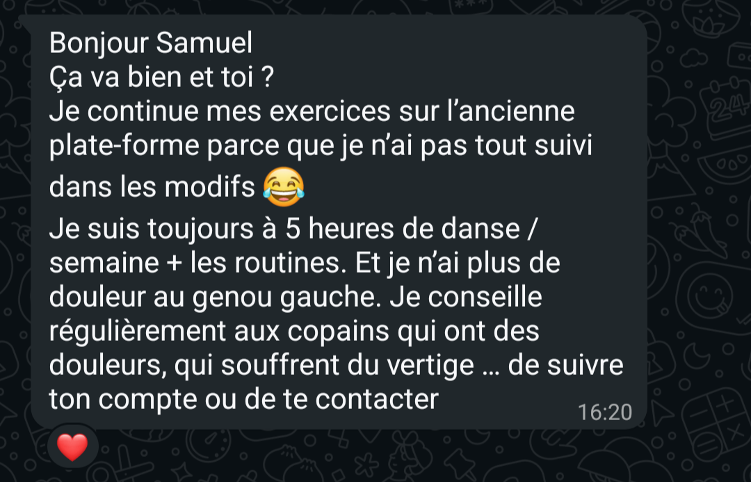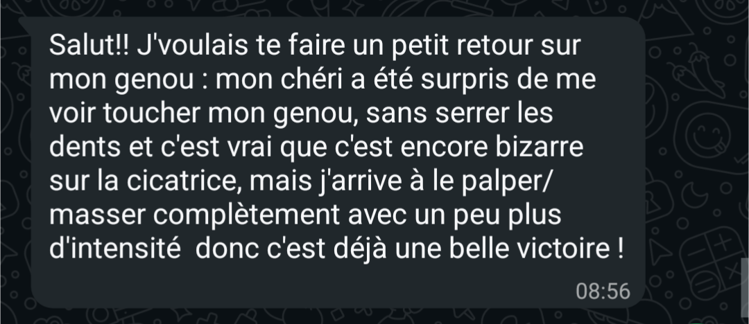 "Petit à petit mon corps s'est refait une santé jusqu'à ce que je n'aie plus de douleurs et surtout plus peur de me faire mal."