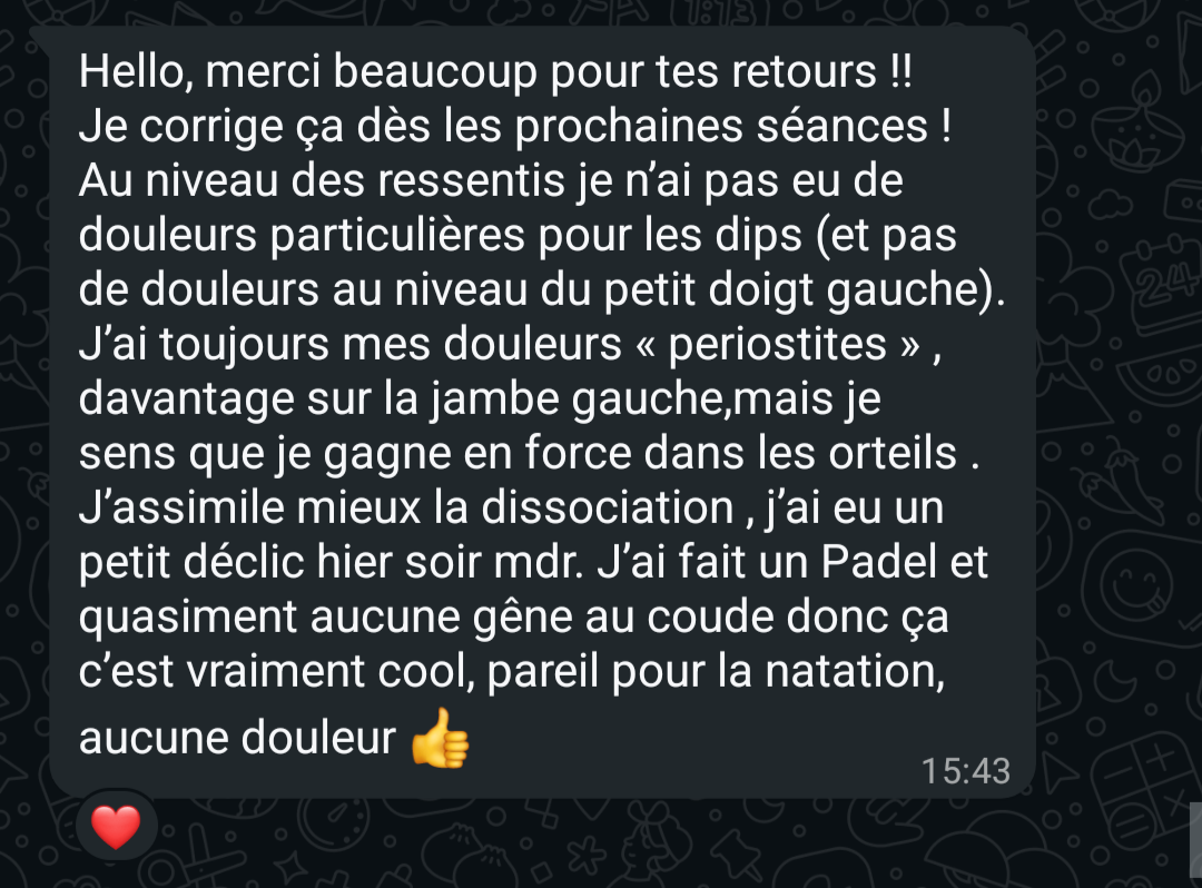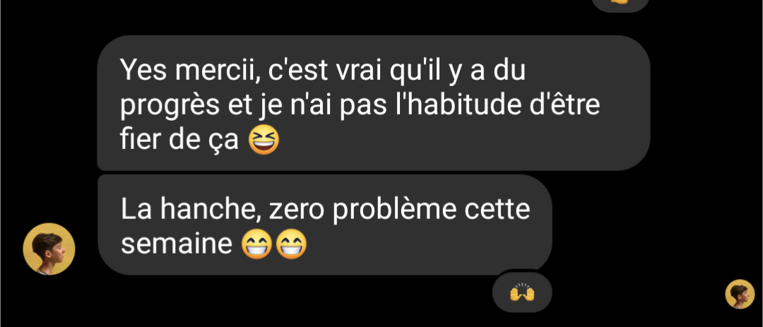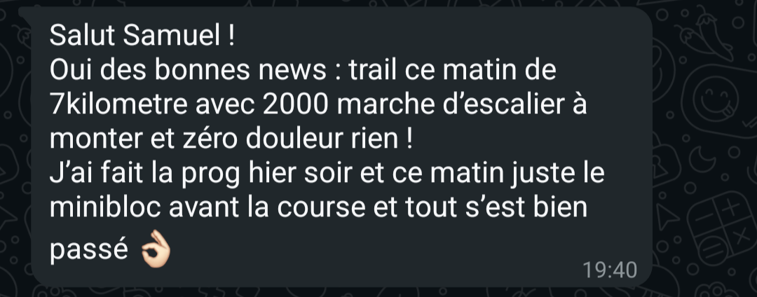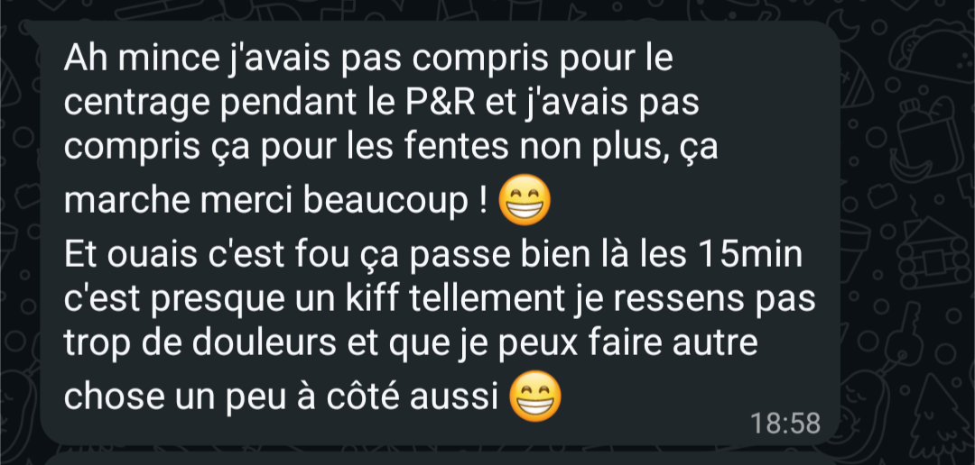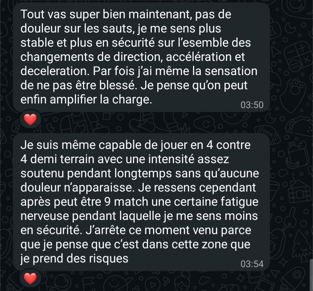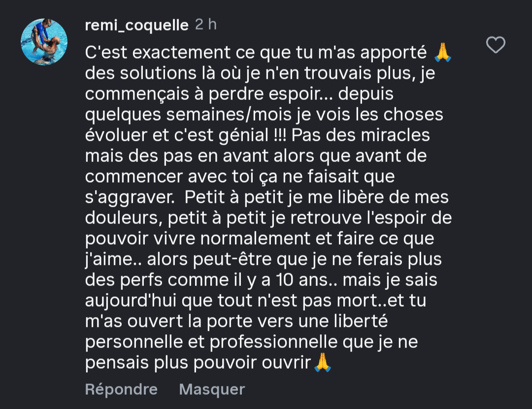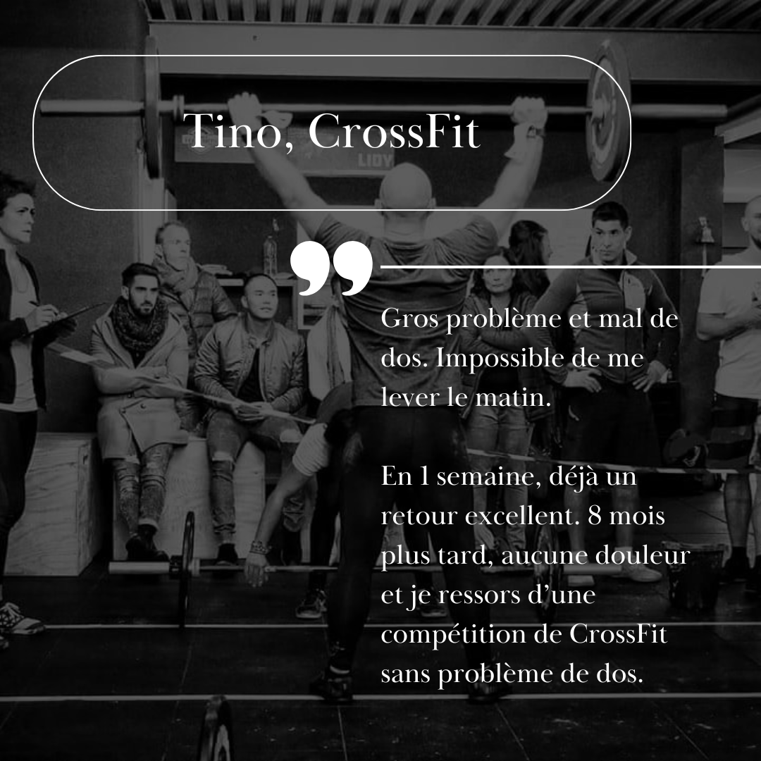 "En 1 semaine, déjà un retour excellent. 8 mois plus tard, aucune douleur et je ressors d'une compétition de Crossfit sans problème de dos"