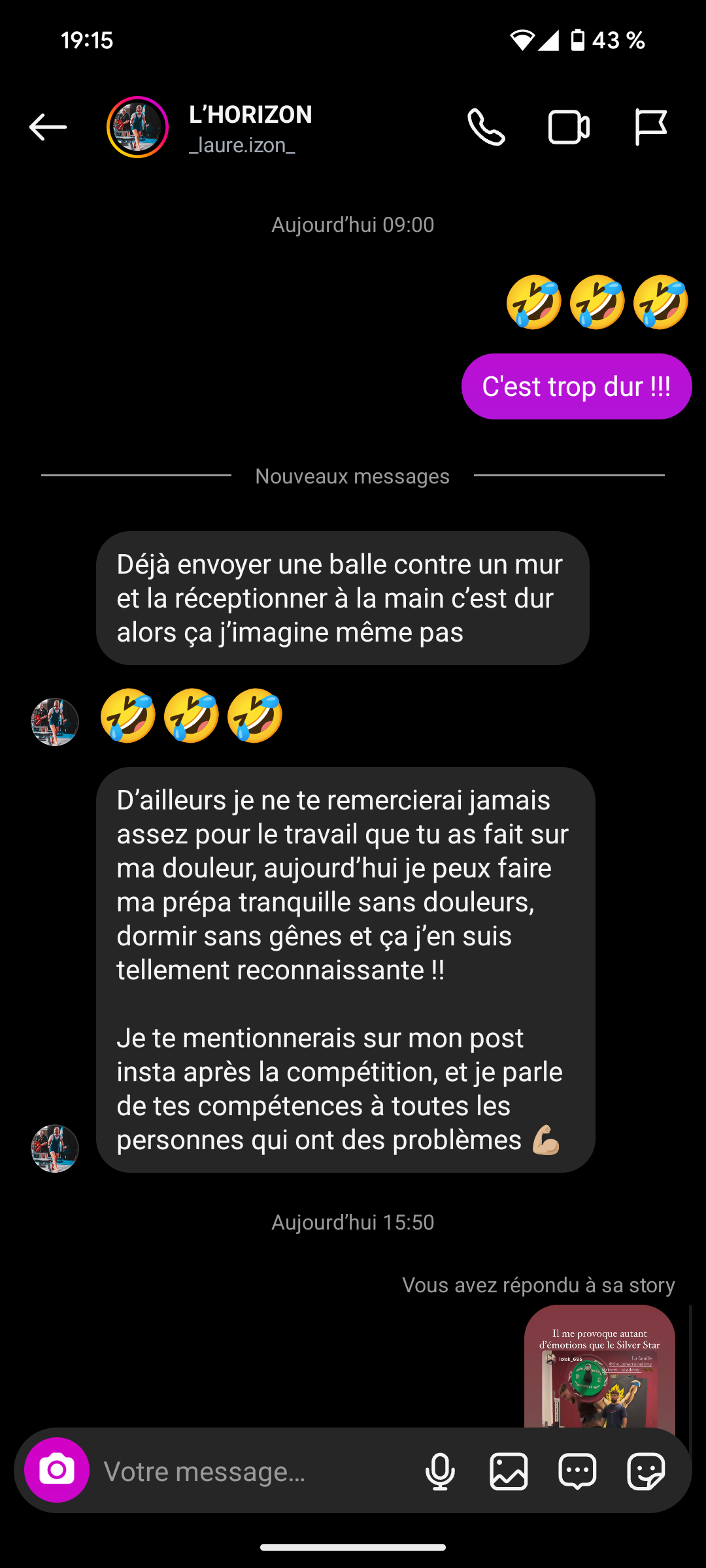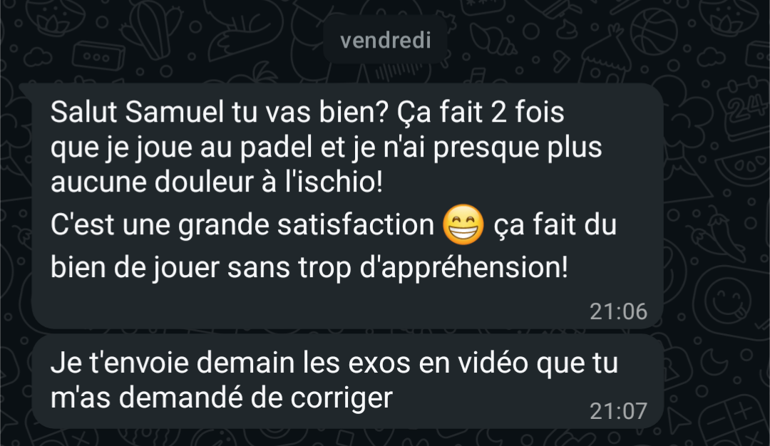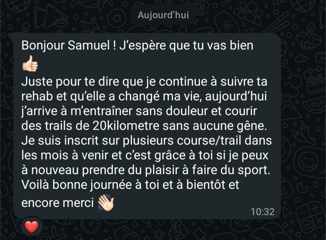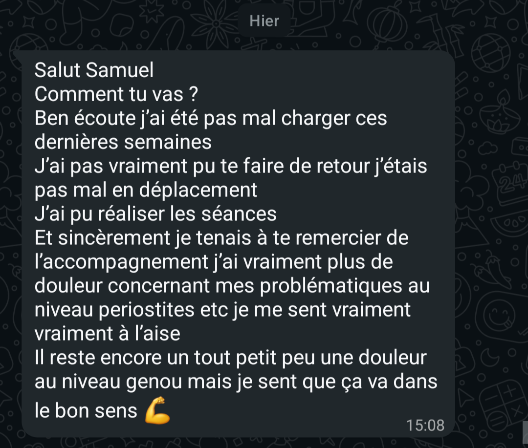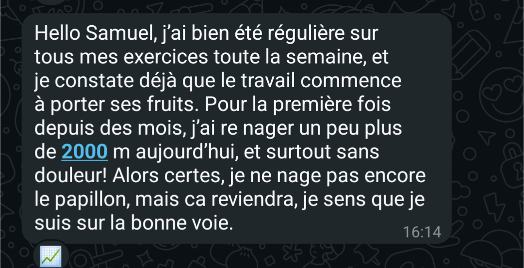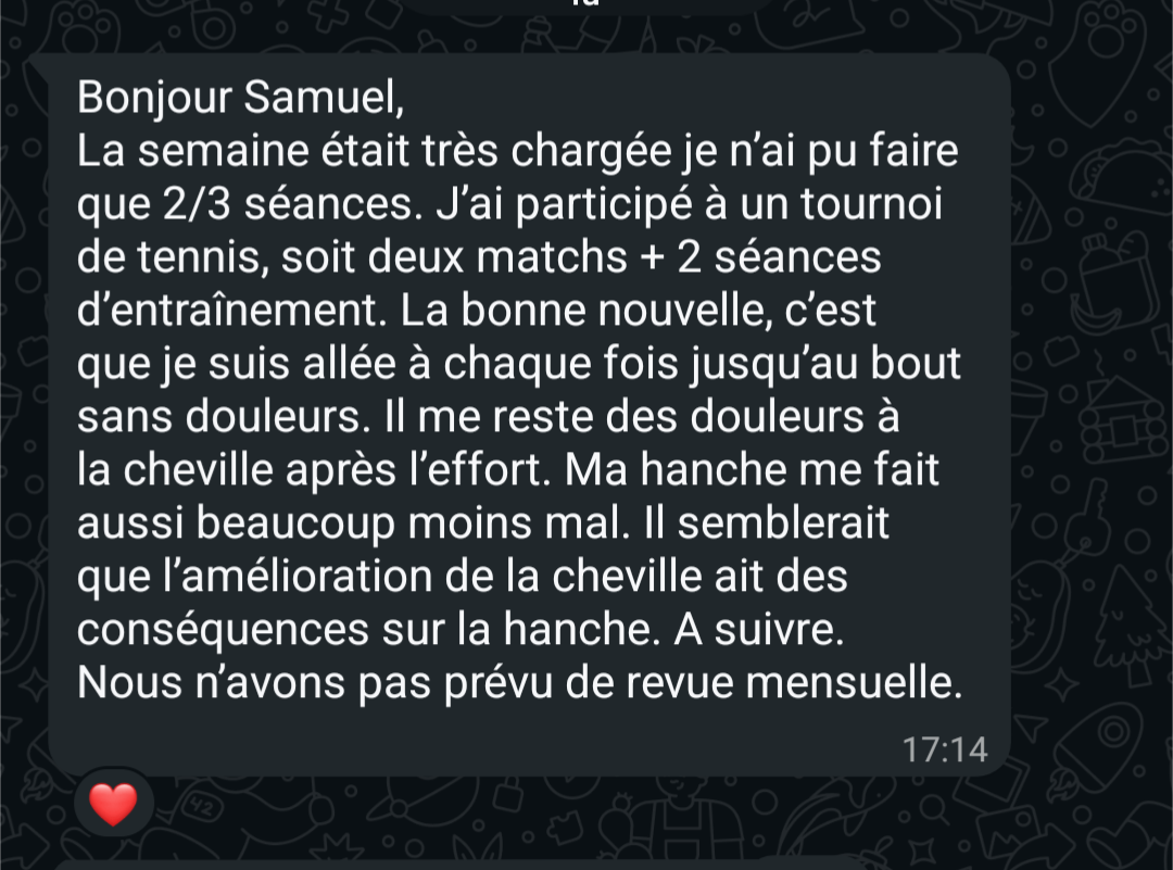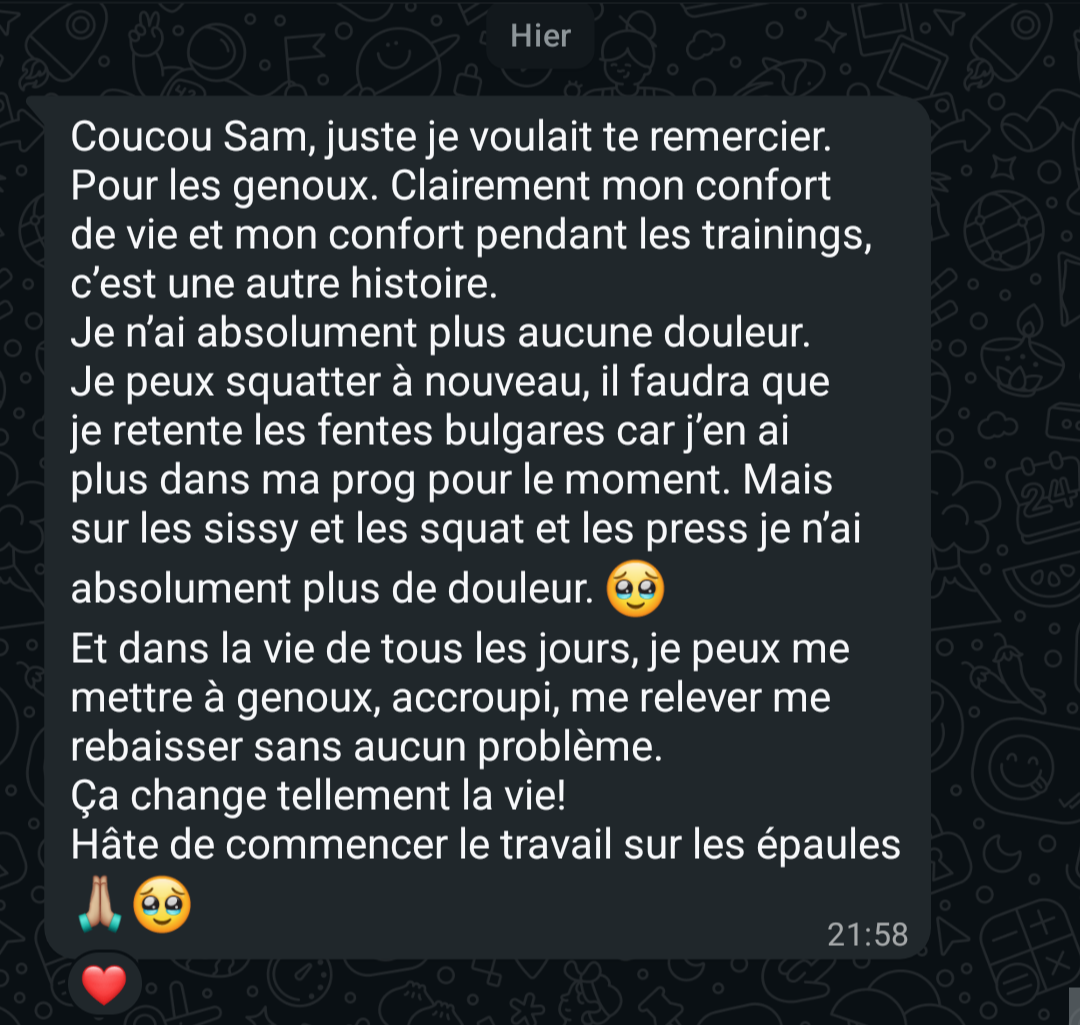 "En 1 semaine, déjà un retour excellent. 8 mois plus tard, aucune douleur et je ressors d'une compétition de Crossfit sans problème de dos"