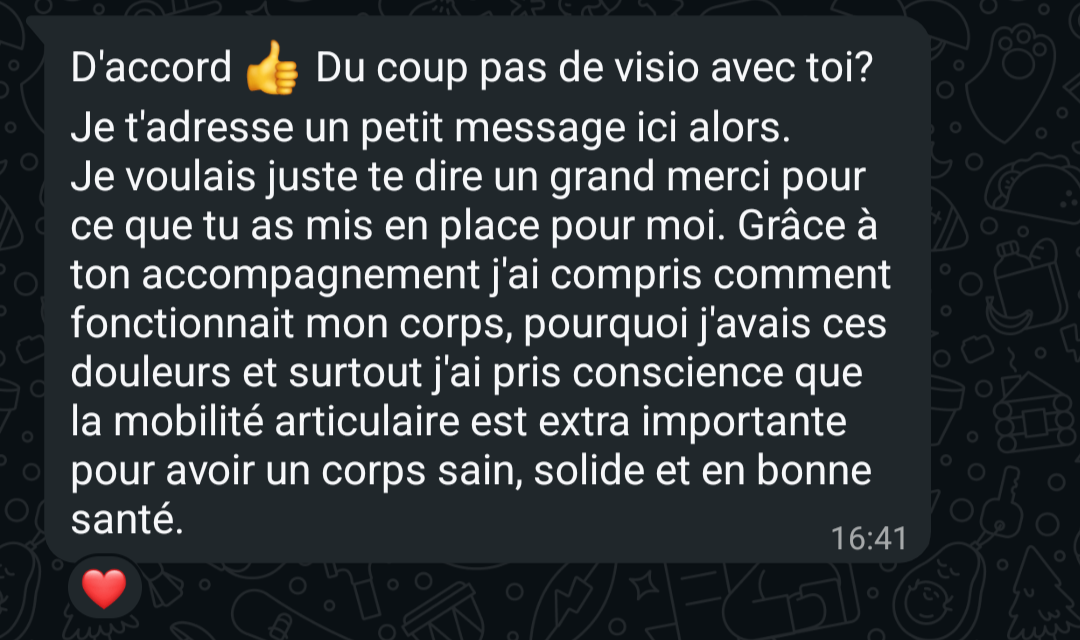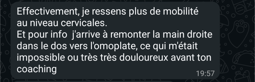 "Réduction ou annihilation des douleurs, plus grande conscience de mon corps."